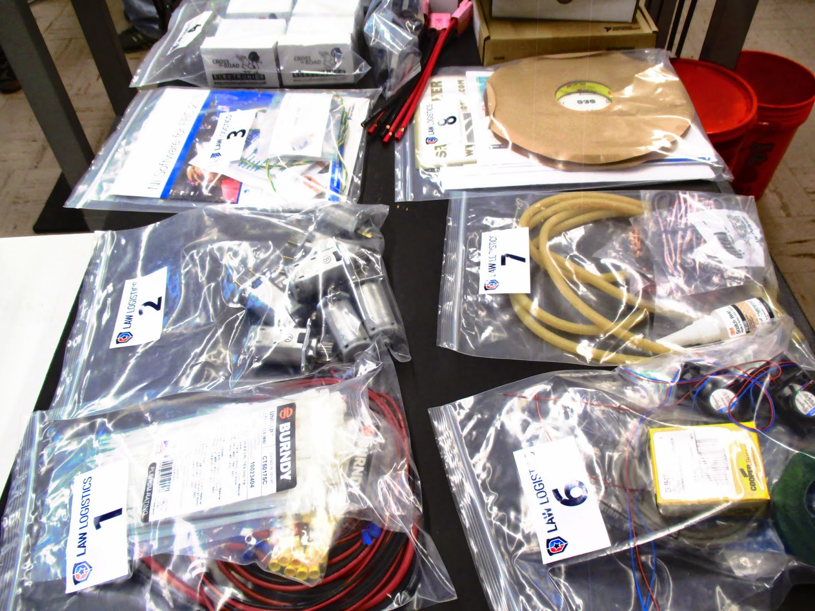 Kickoff was lovely, starring the celebrities of FIRST, Dean Kamen and Woodie Flowers. We left the building with two large storage totes, a recycling bin, a new battery, and several other odds and ends.